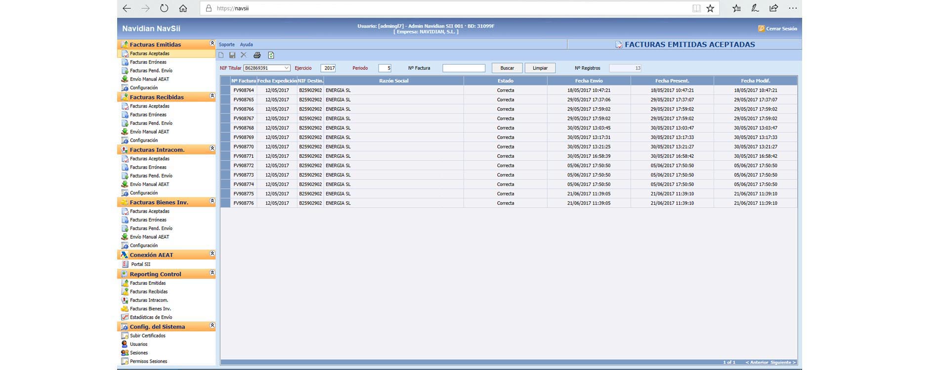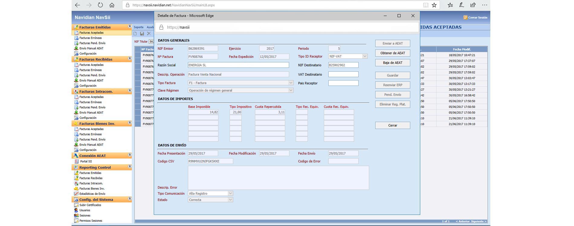 NavSii es la única plataforma que controla de manera robusta la comunicación entre el cliente y la AEAT. Avisos de envíos de datos y de errores vía correo electrónico.